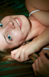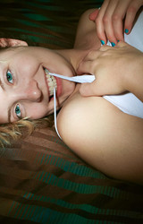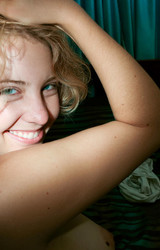 Kata, una bella ragazza bionda con gli occhi belli, si spoglia e si masturba