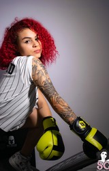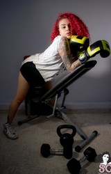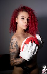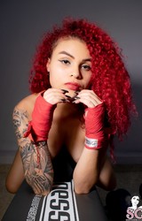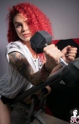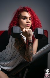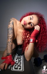 Niki, una sexy ragazza tatuata dai capelli rossi ricci, si spoglia nuda
