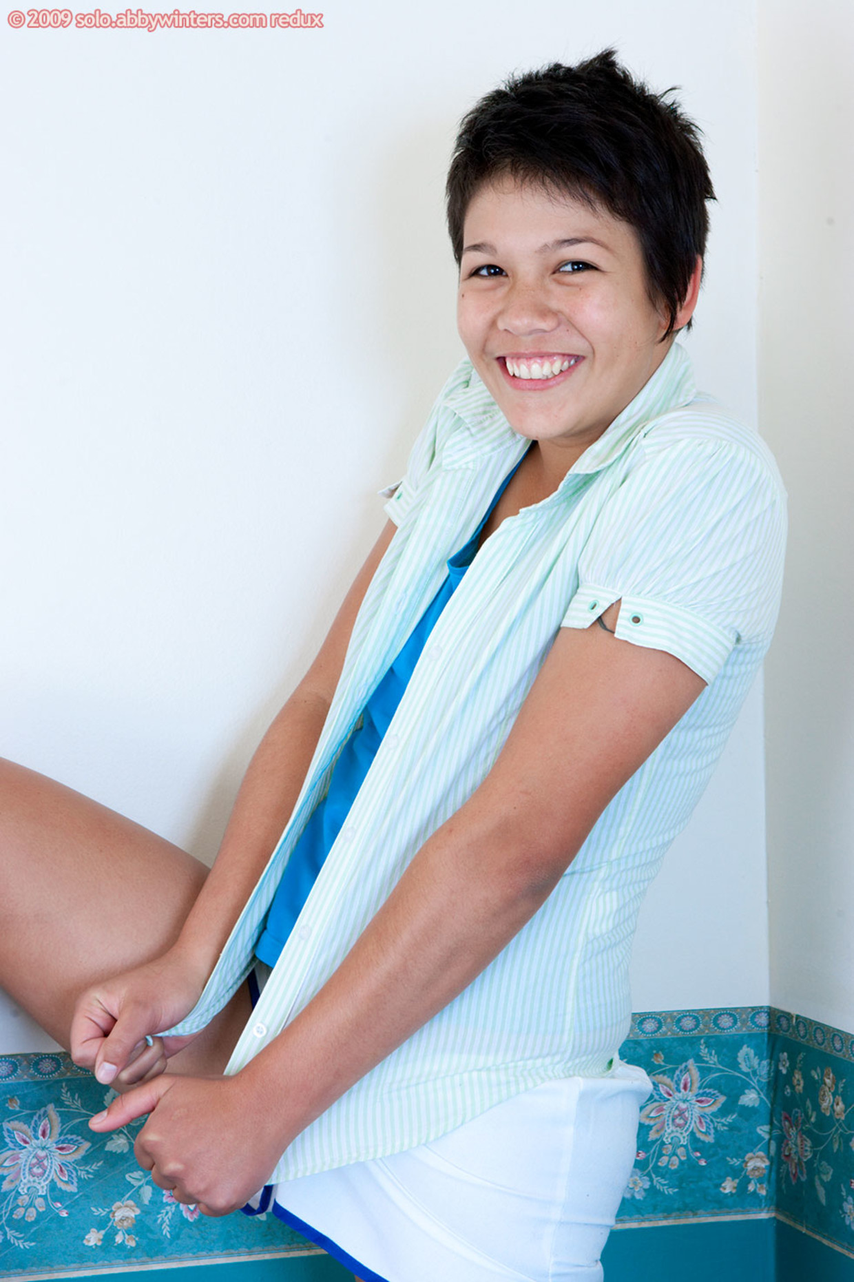 Adolescente con la figa pelosa e le tette piccole dai capelli corti spogliata nuda