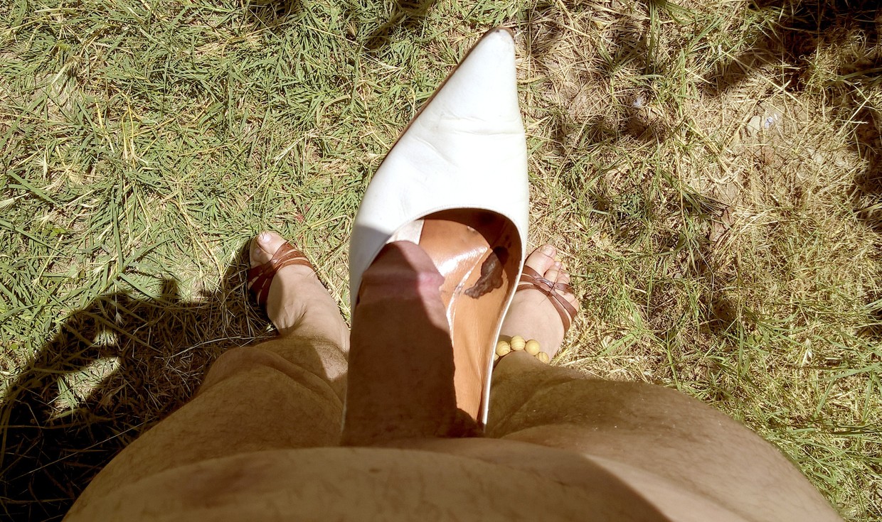 Donna vestita nuda all'aperto