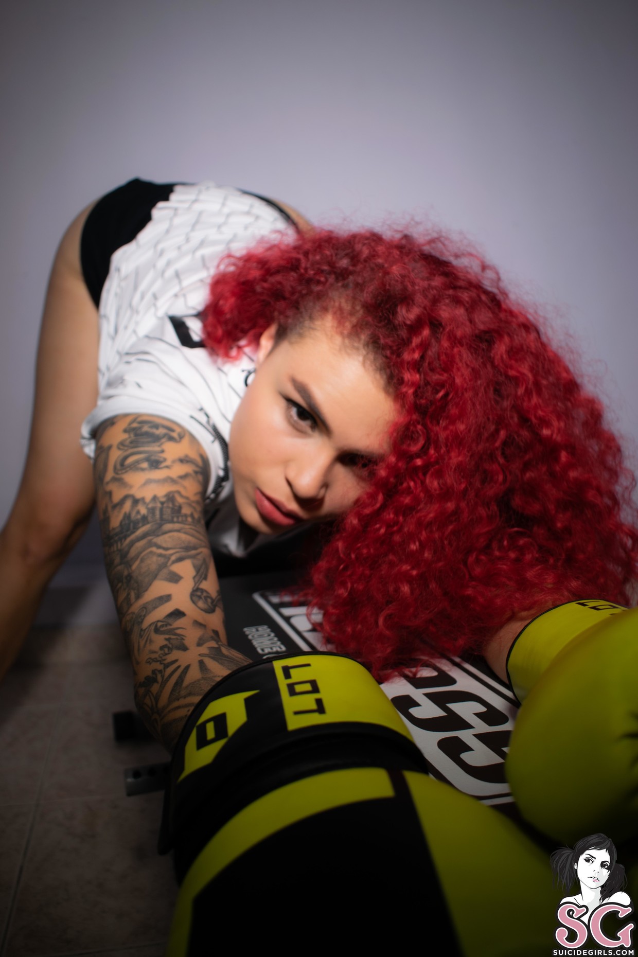 Niki, una sexy ragazza tatuata dai capelli rossi ricci, si spoglia nuda
