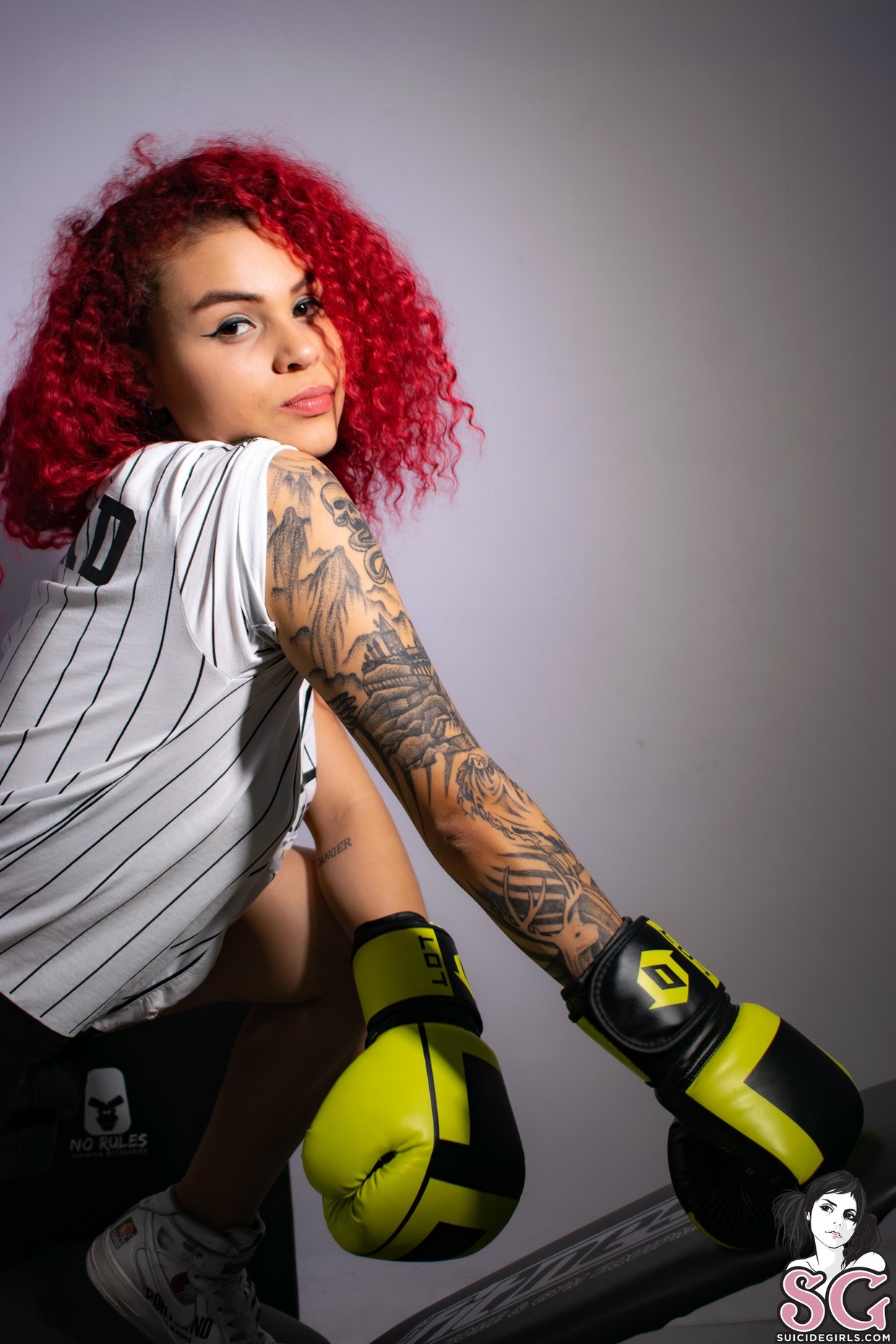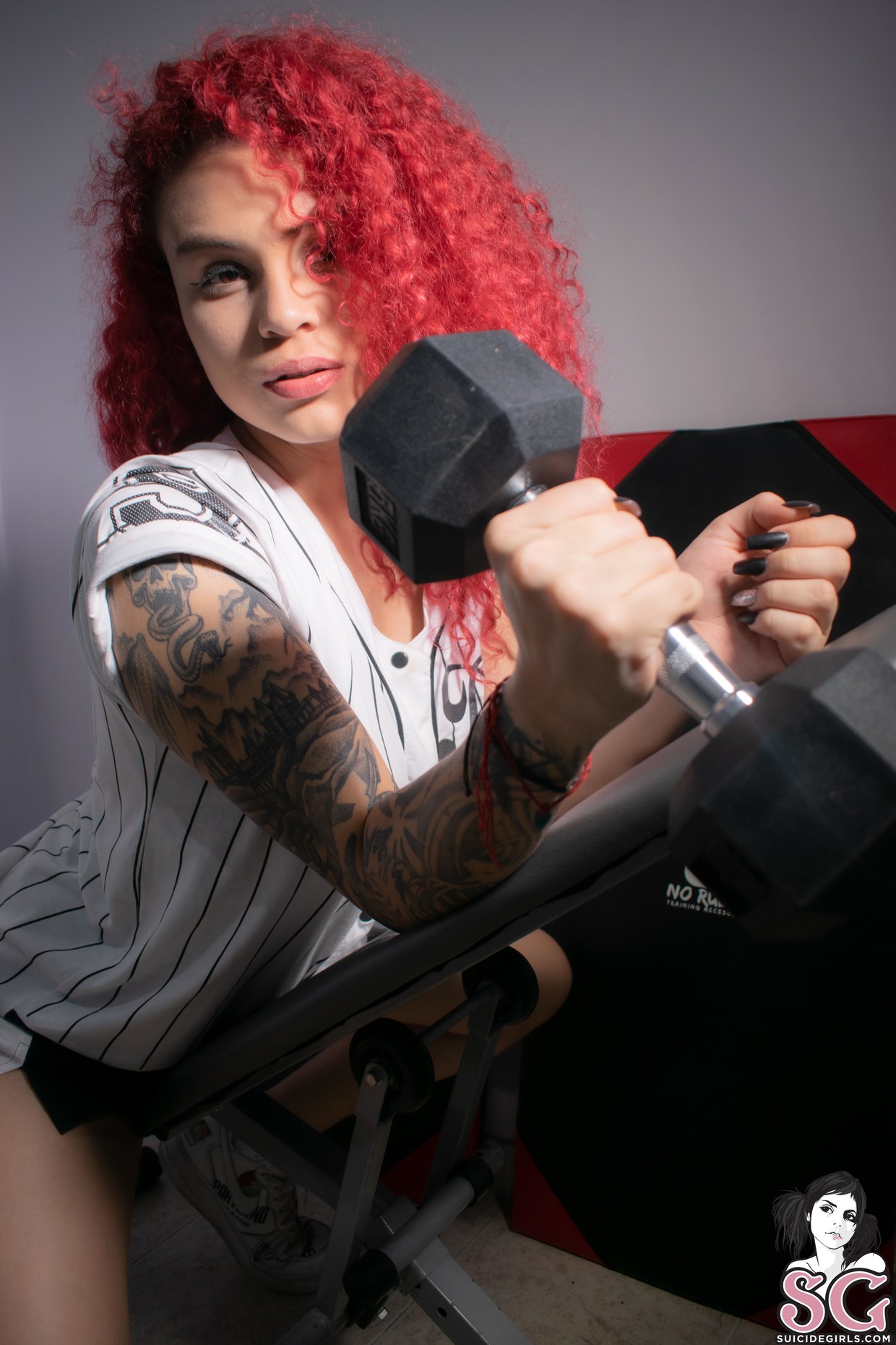 Niki, una sexy ragazza tatuata dai capelli rossi ricci, si spoglia nuda