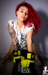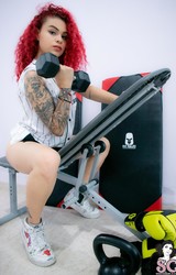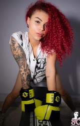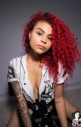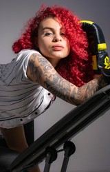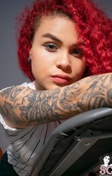 Niki, una sexy ragazza tatuata dai capelli rossi ricci, si spoglia nuda