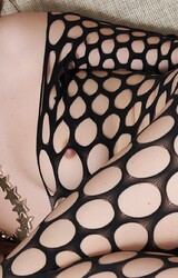 Ragazza con la figa pelosa che posa con un vestito interessante